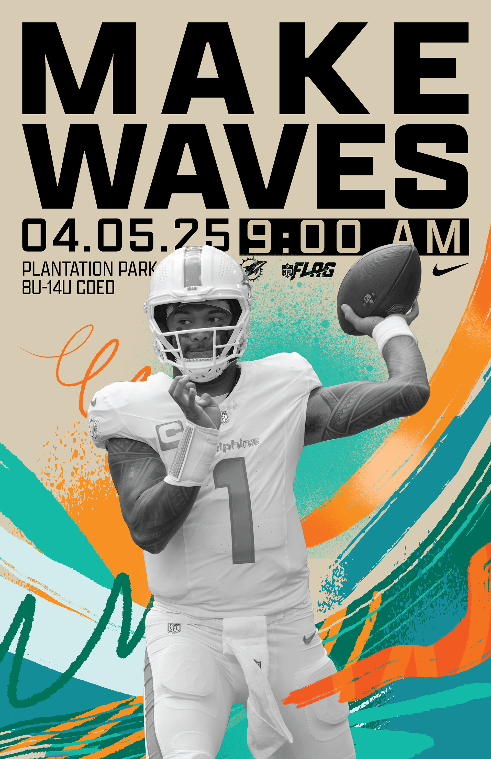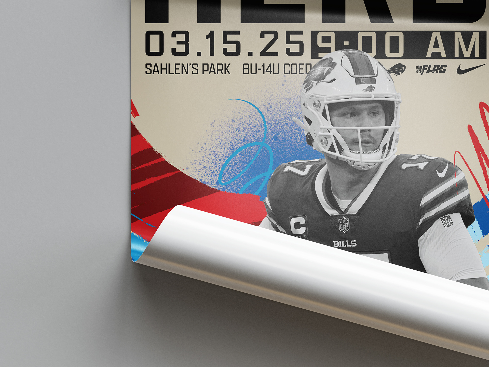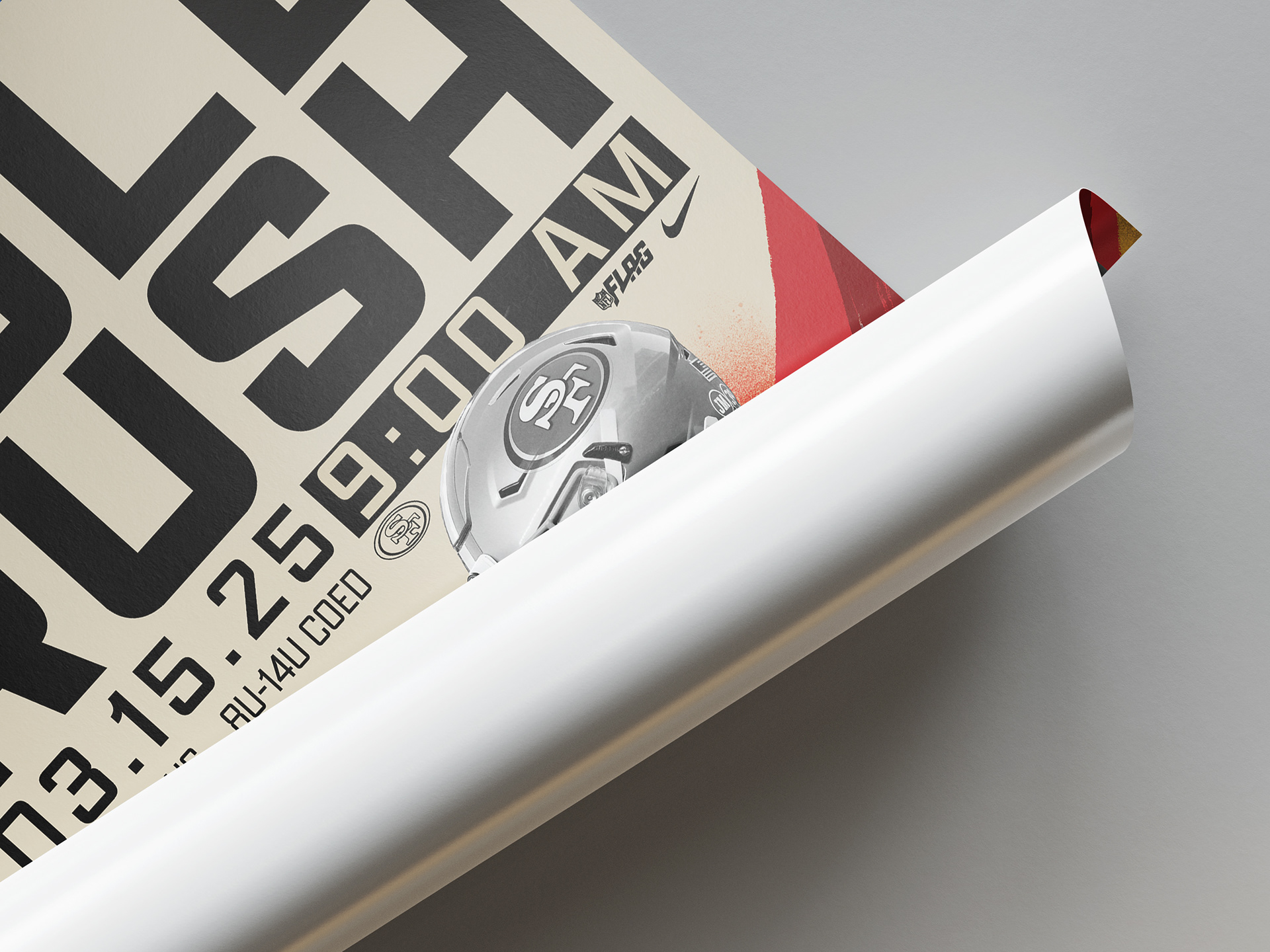 For this class branding project, I created posters and event signage for the NFL Flag Football program. The objective was to combine teams' branding, elite high-level athletic design, and be playful enough for kids.